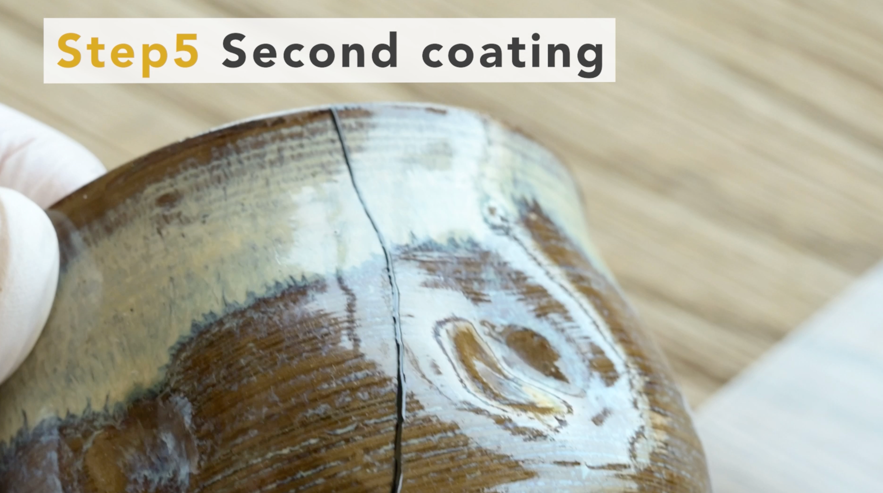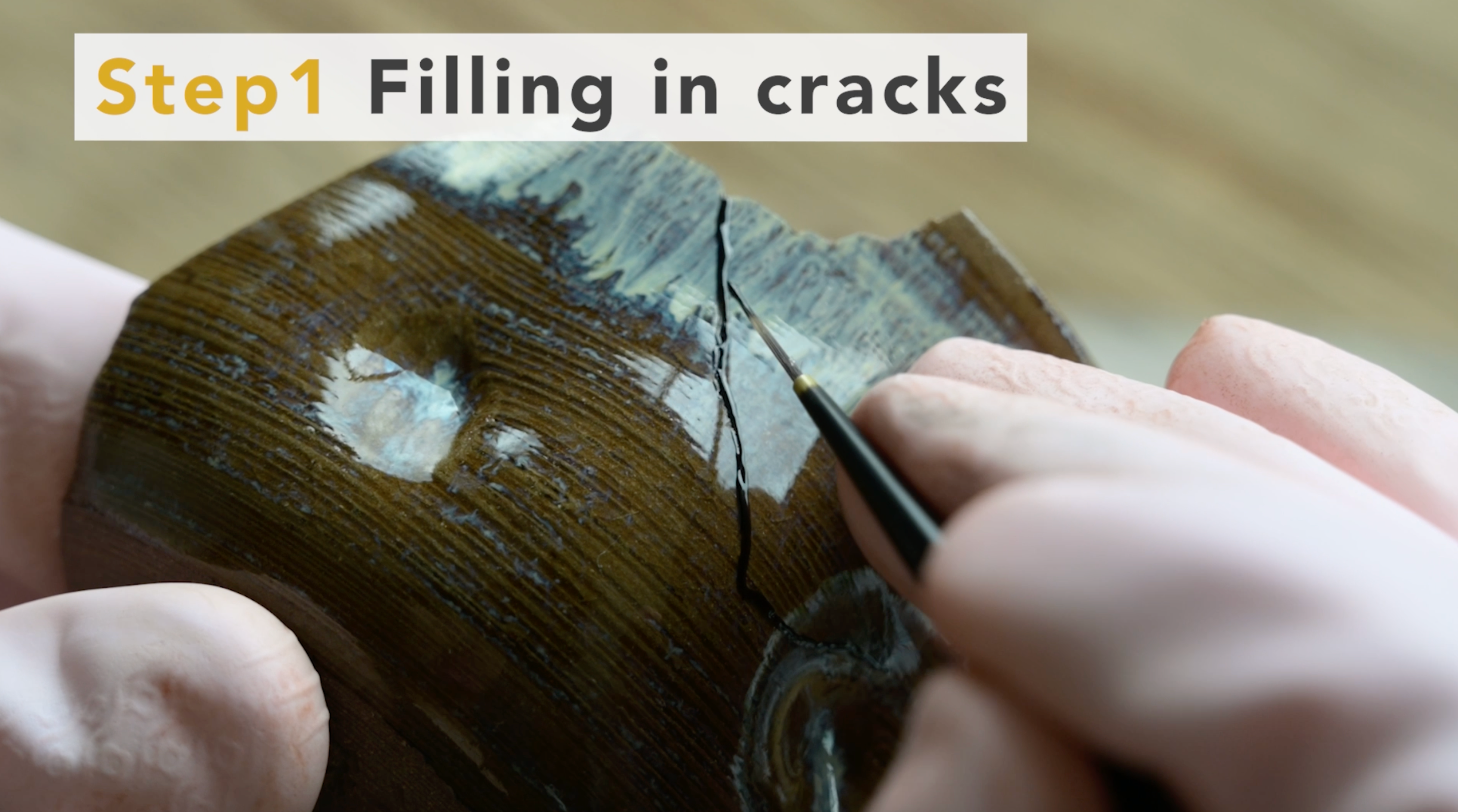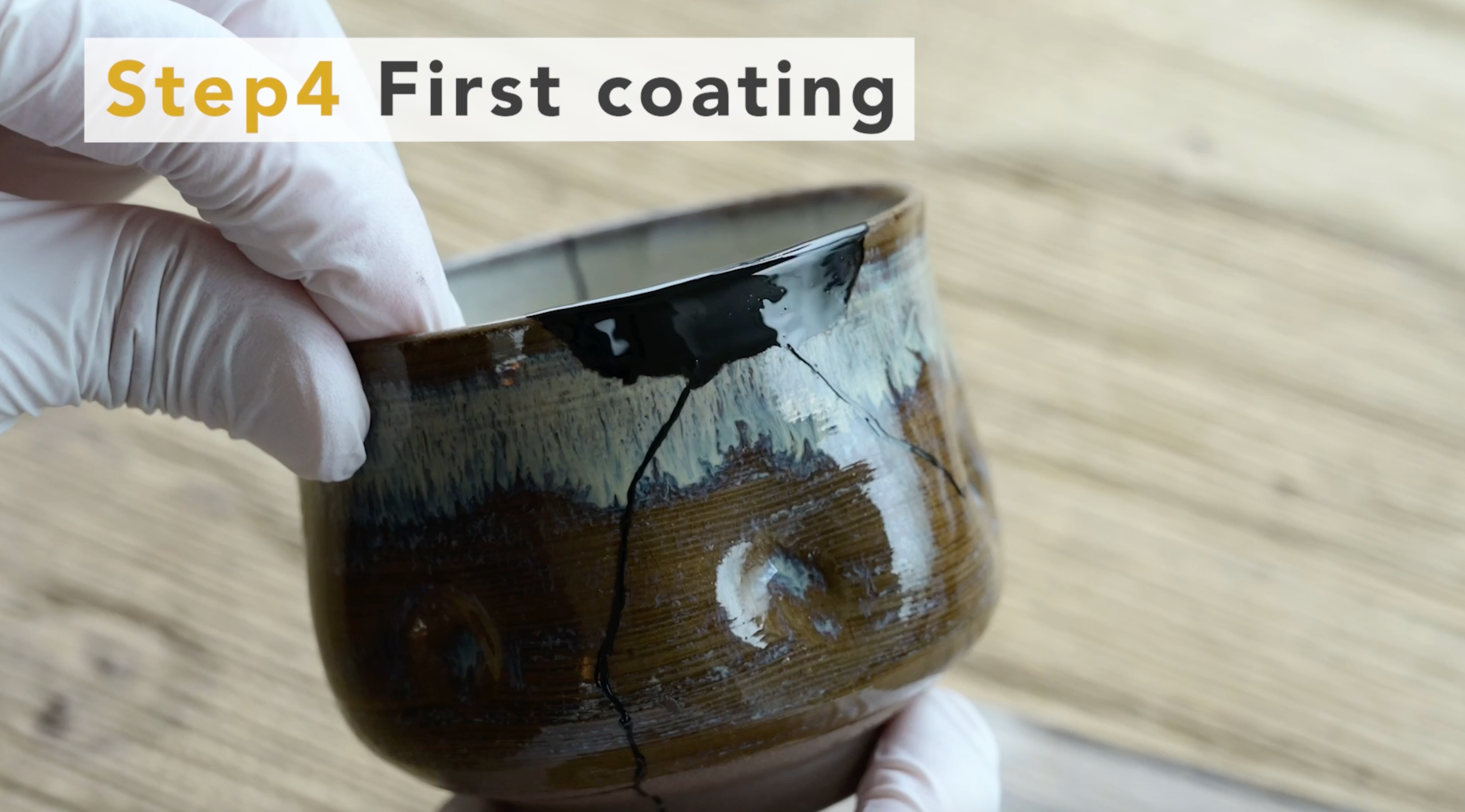 Deep cracks should be filled in several coats, as multiple coats of black urushi may cause staining.