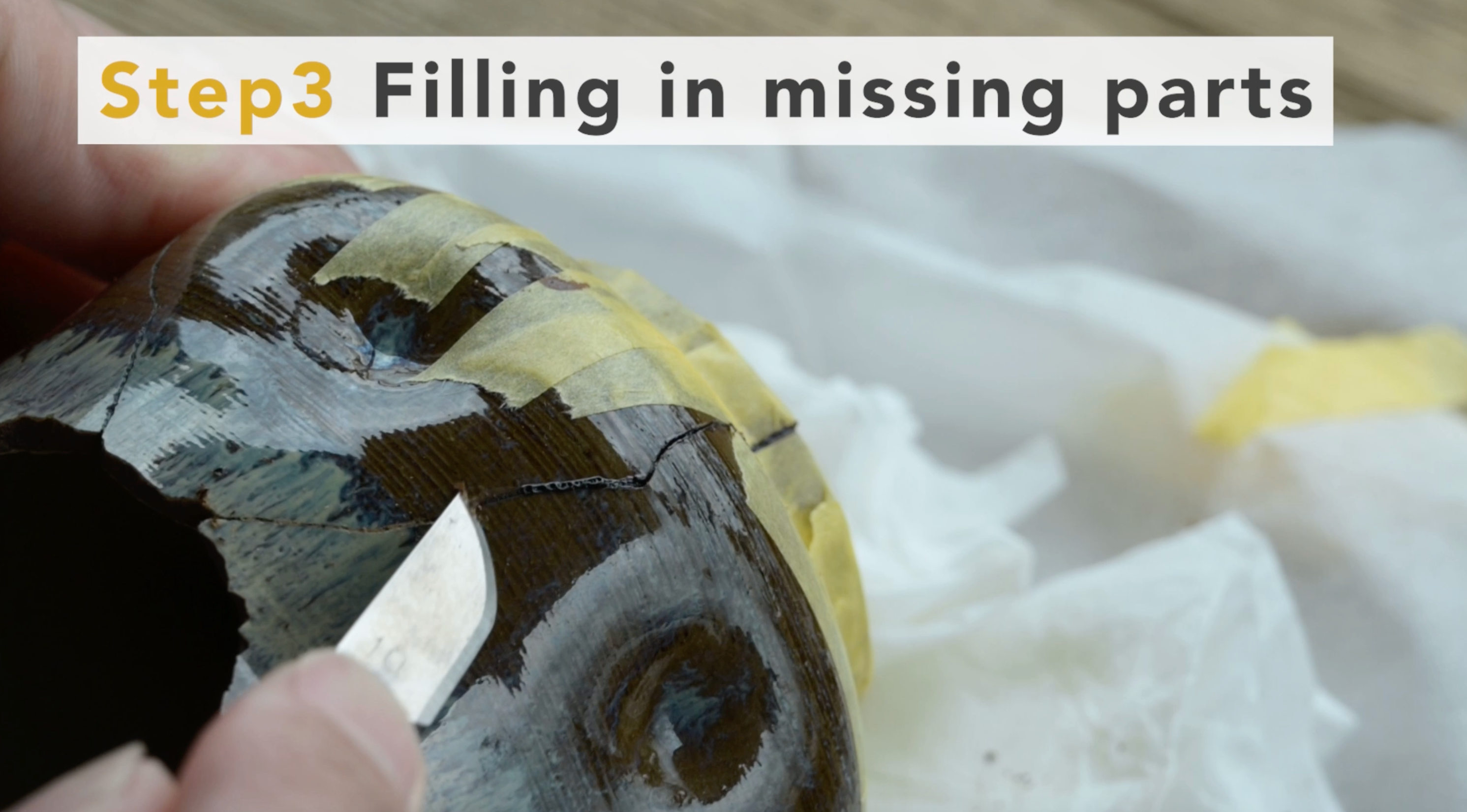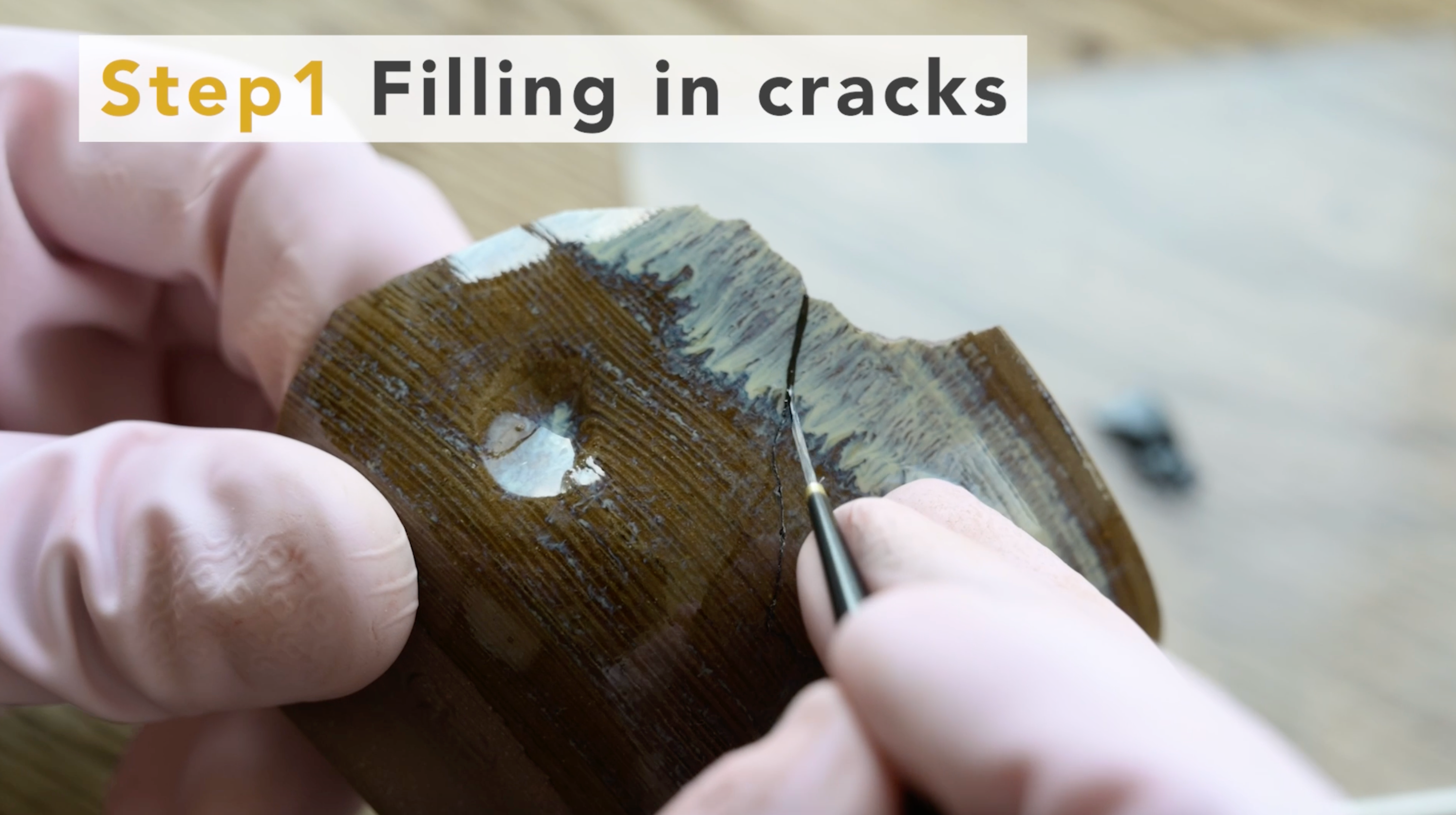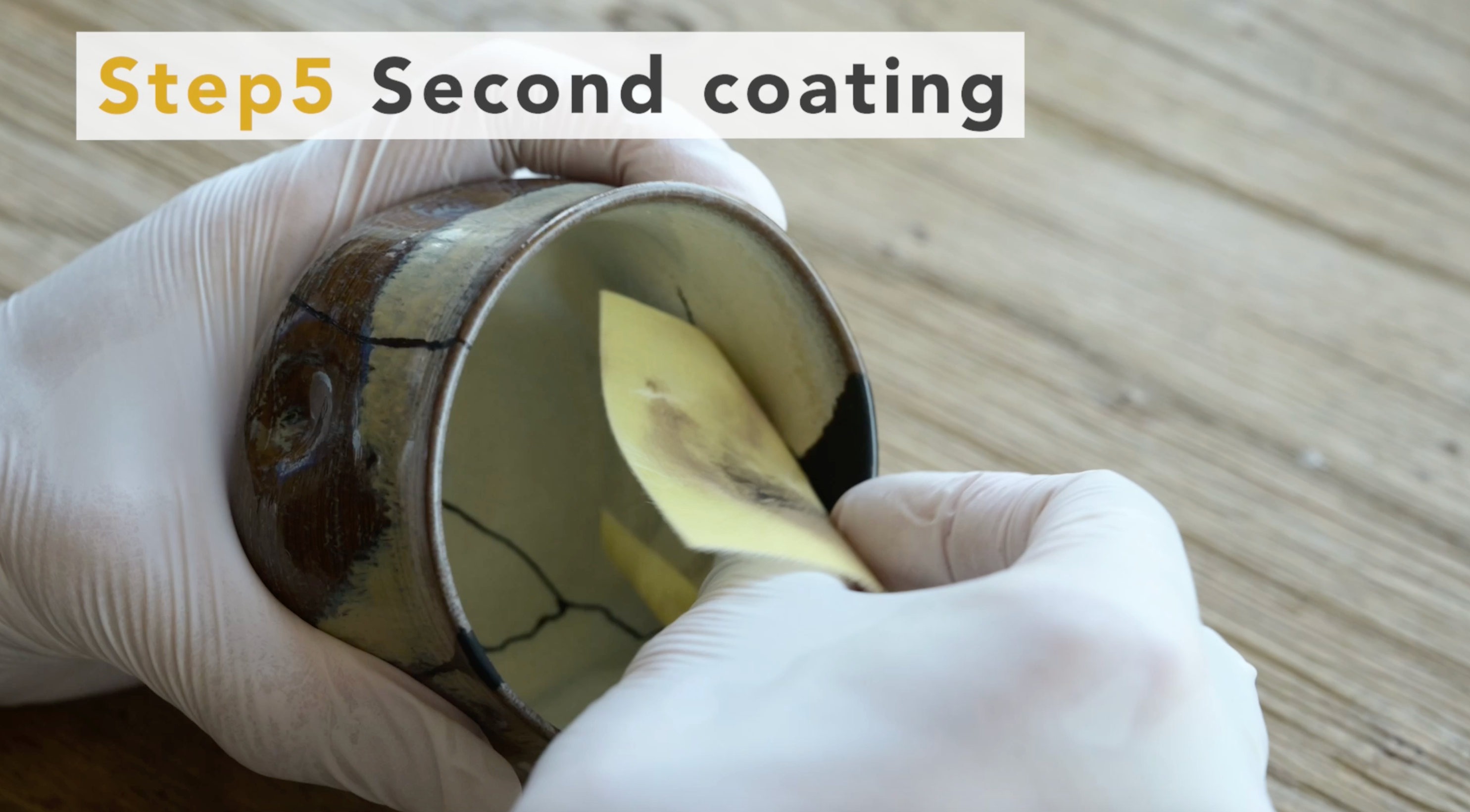 Deep cracks should be filled in several coats, as multiple coats of black urushi may cause staining.
