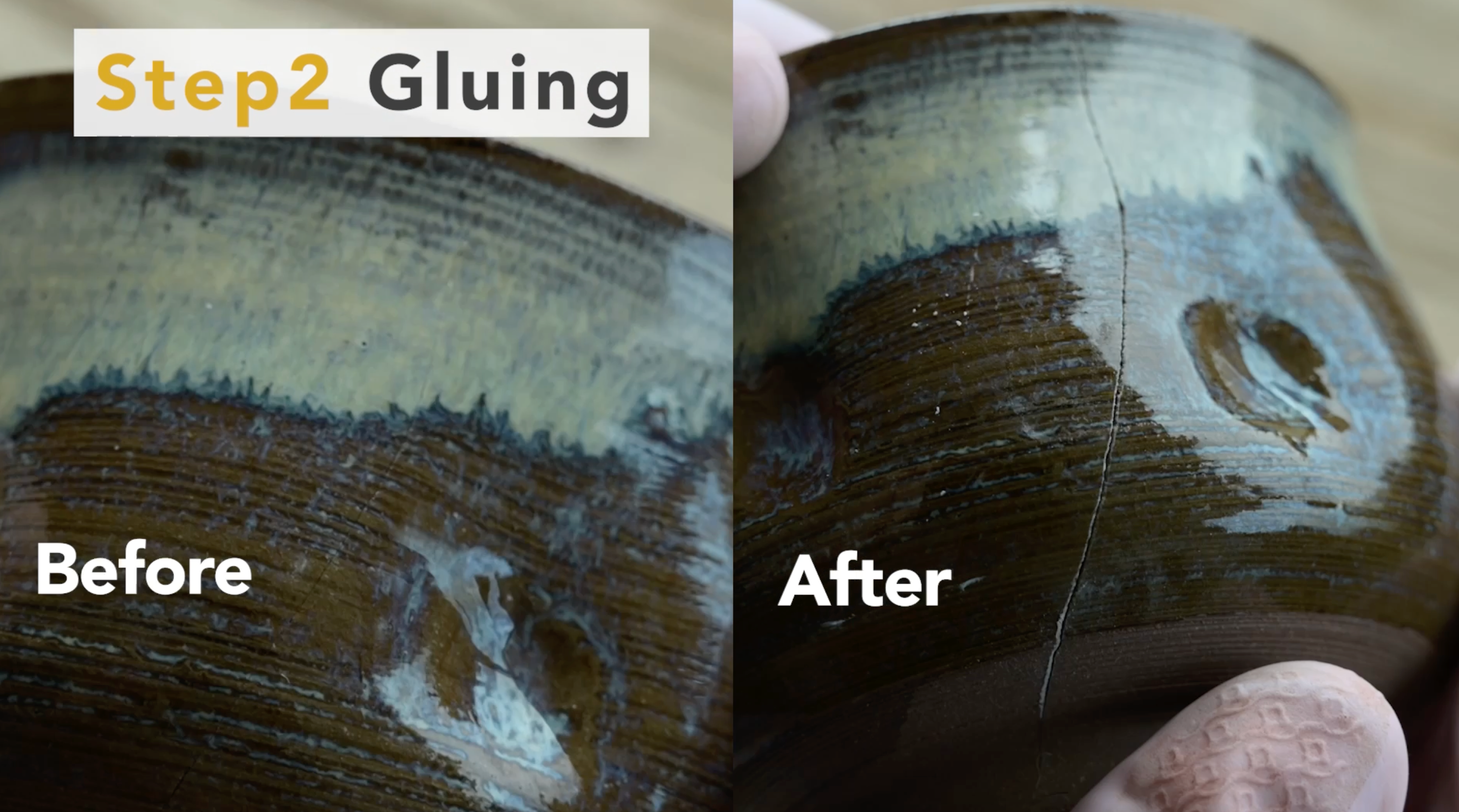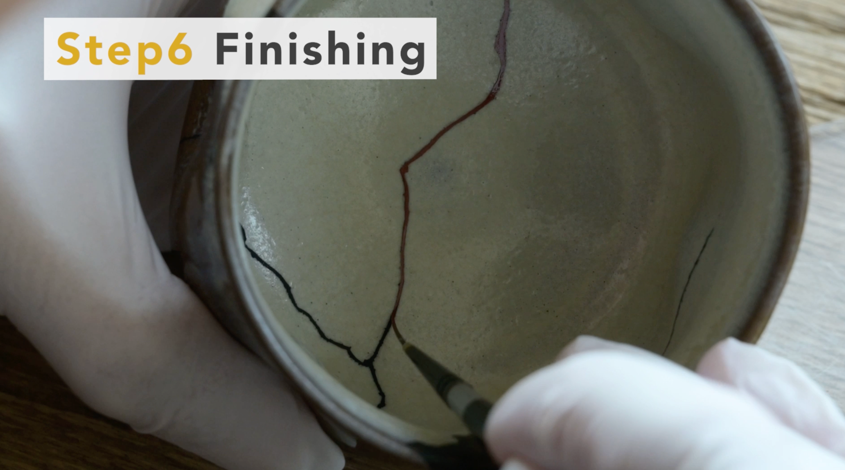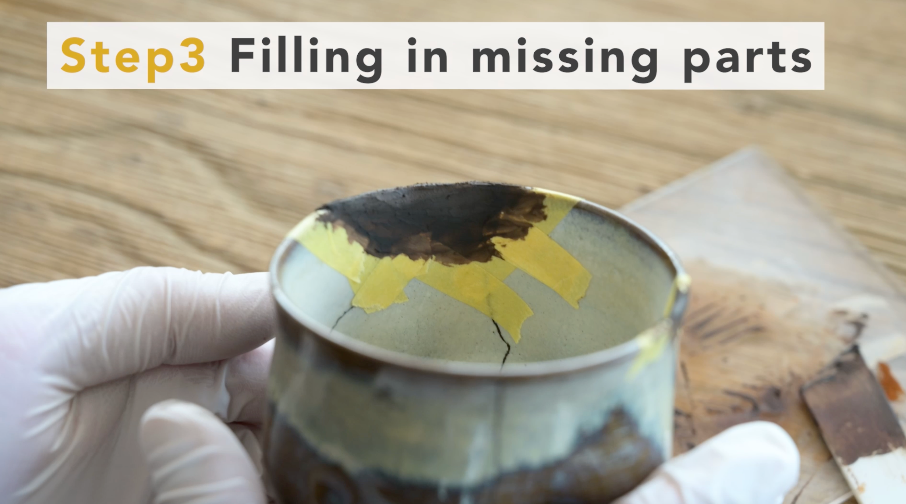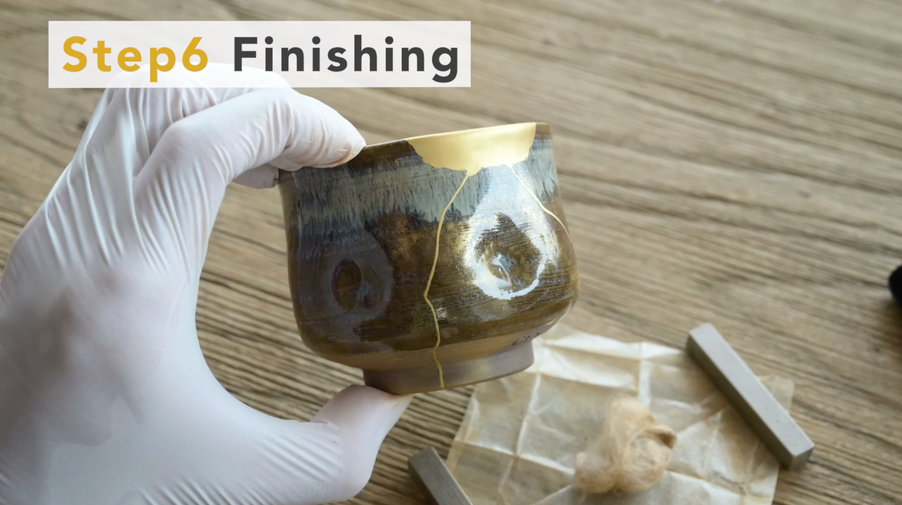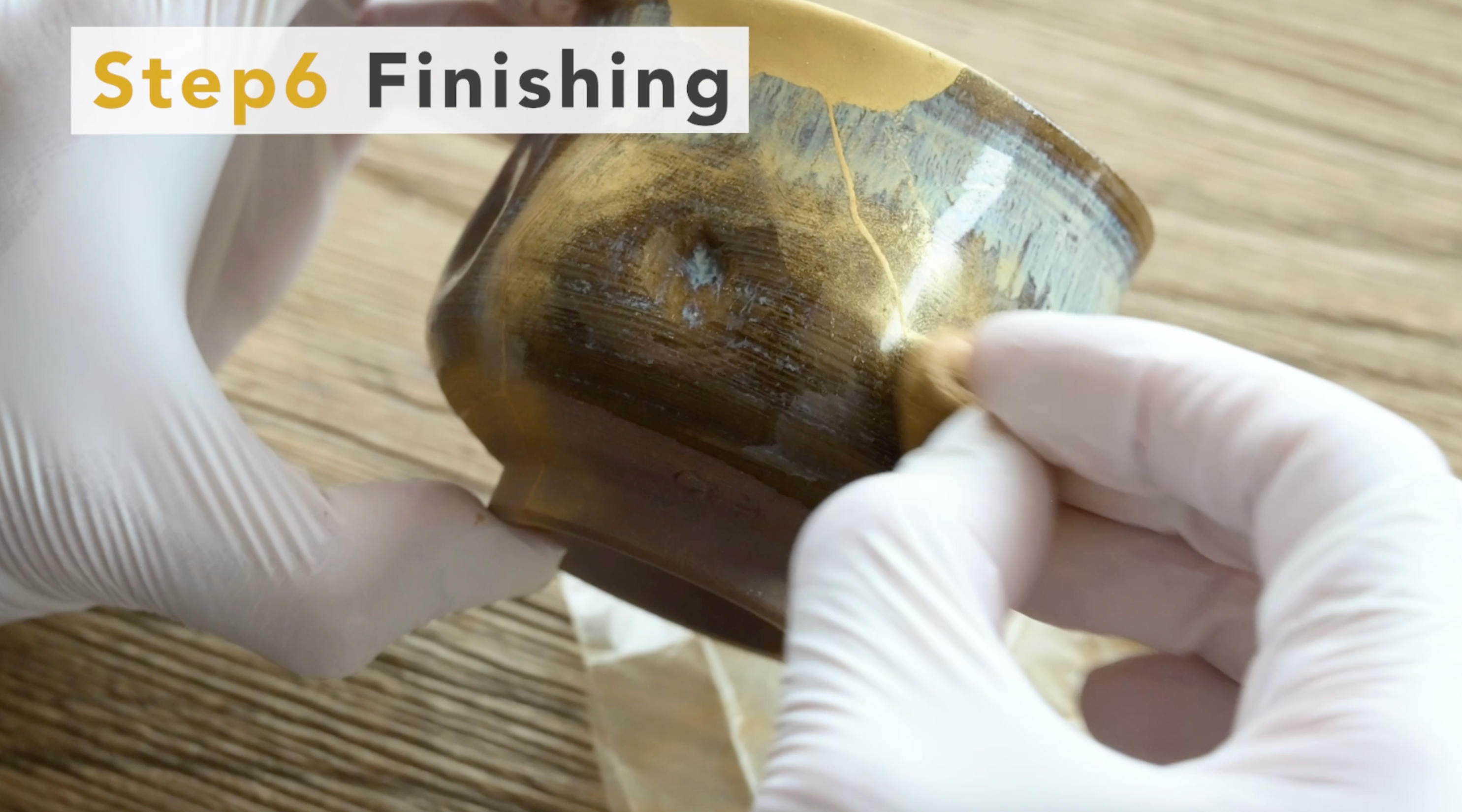 *For ceramics with thin glaze or those which urushi is likely to bleed through, use masking tape to protect the area around the joints in advance.