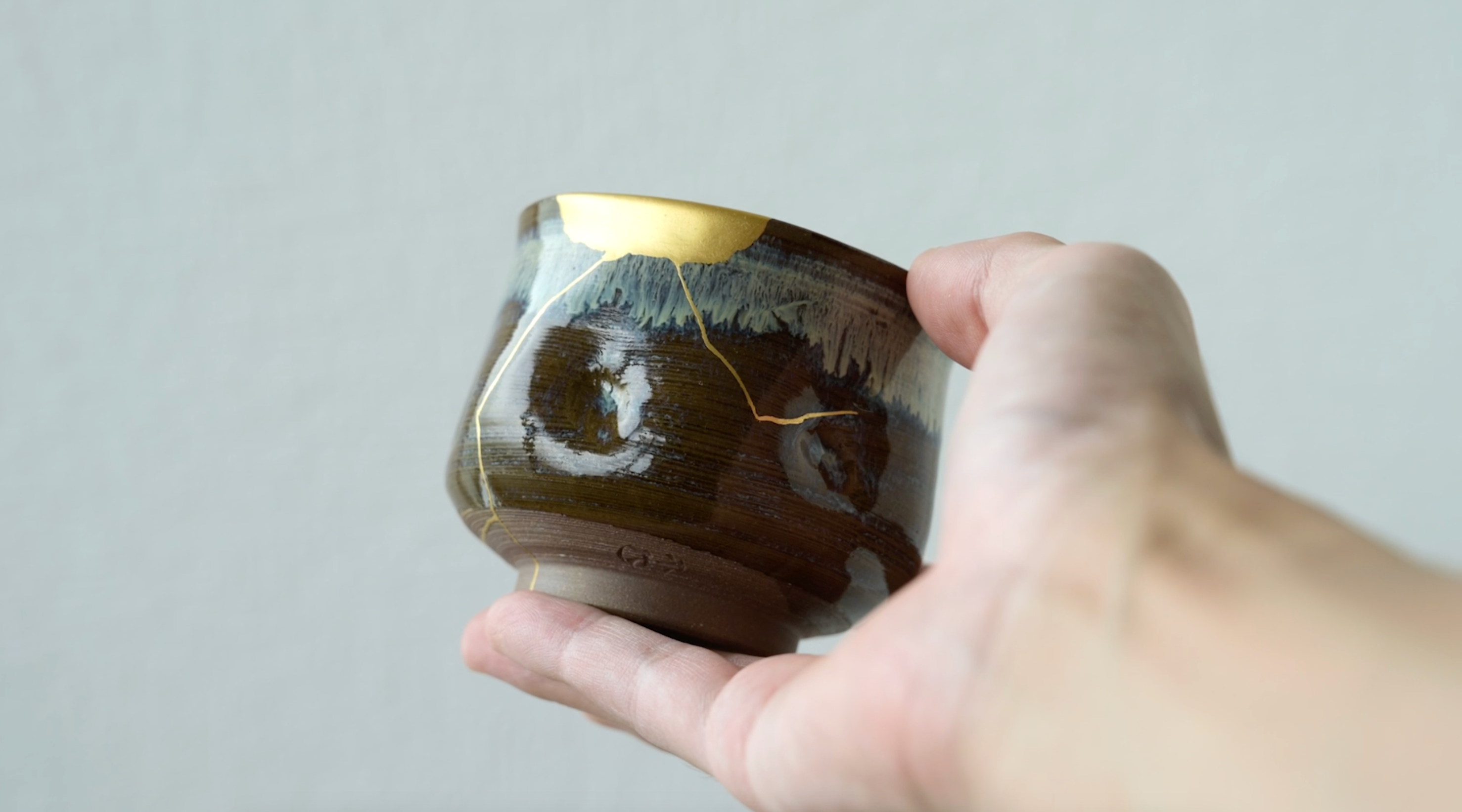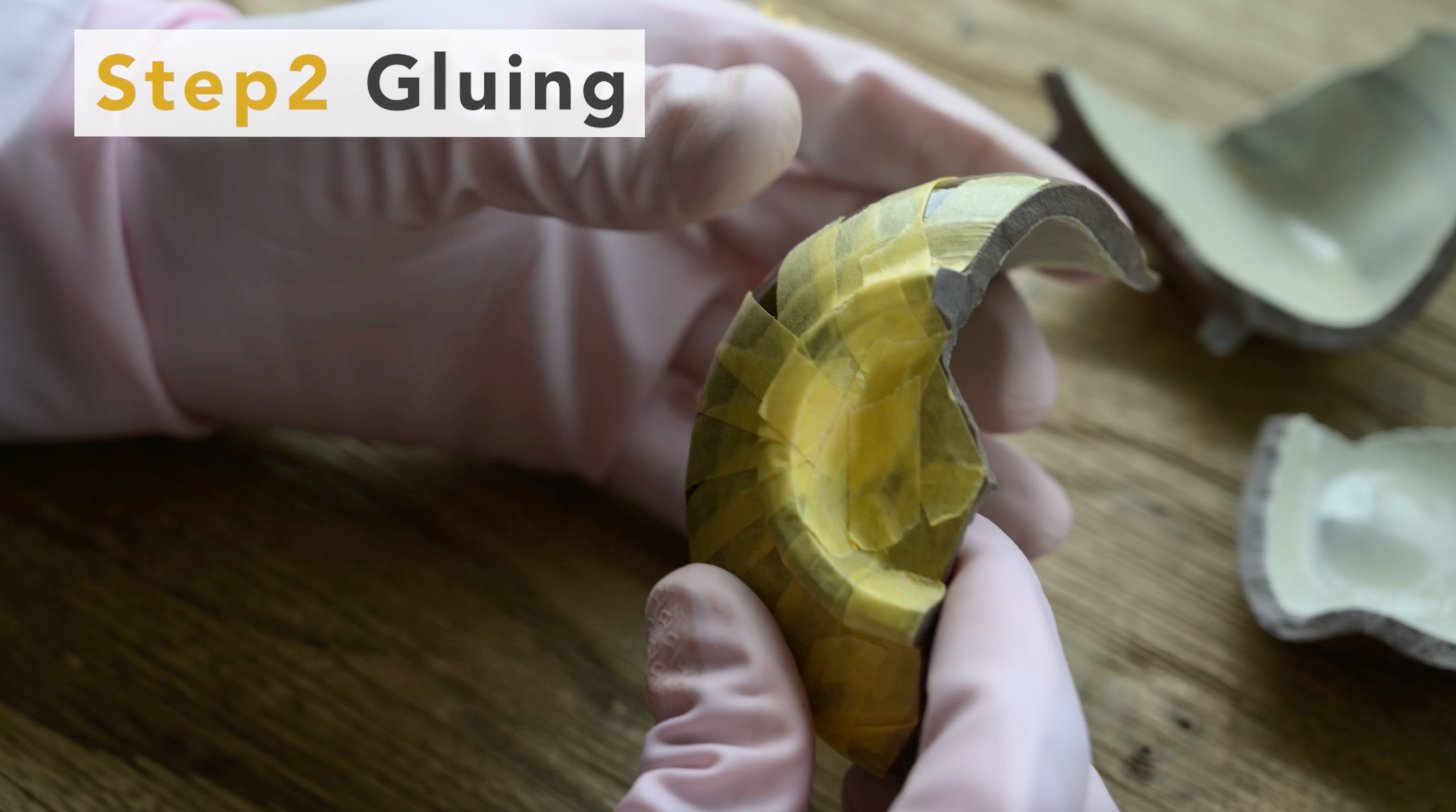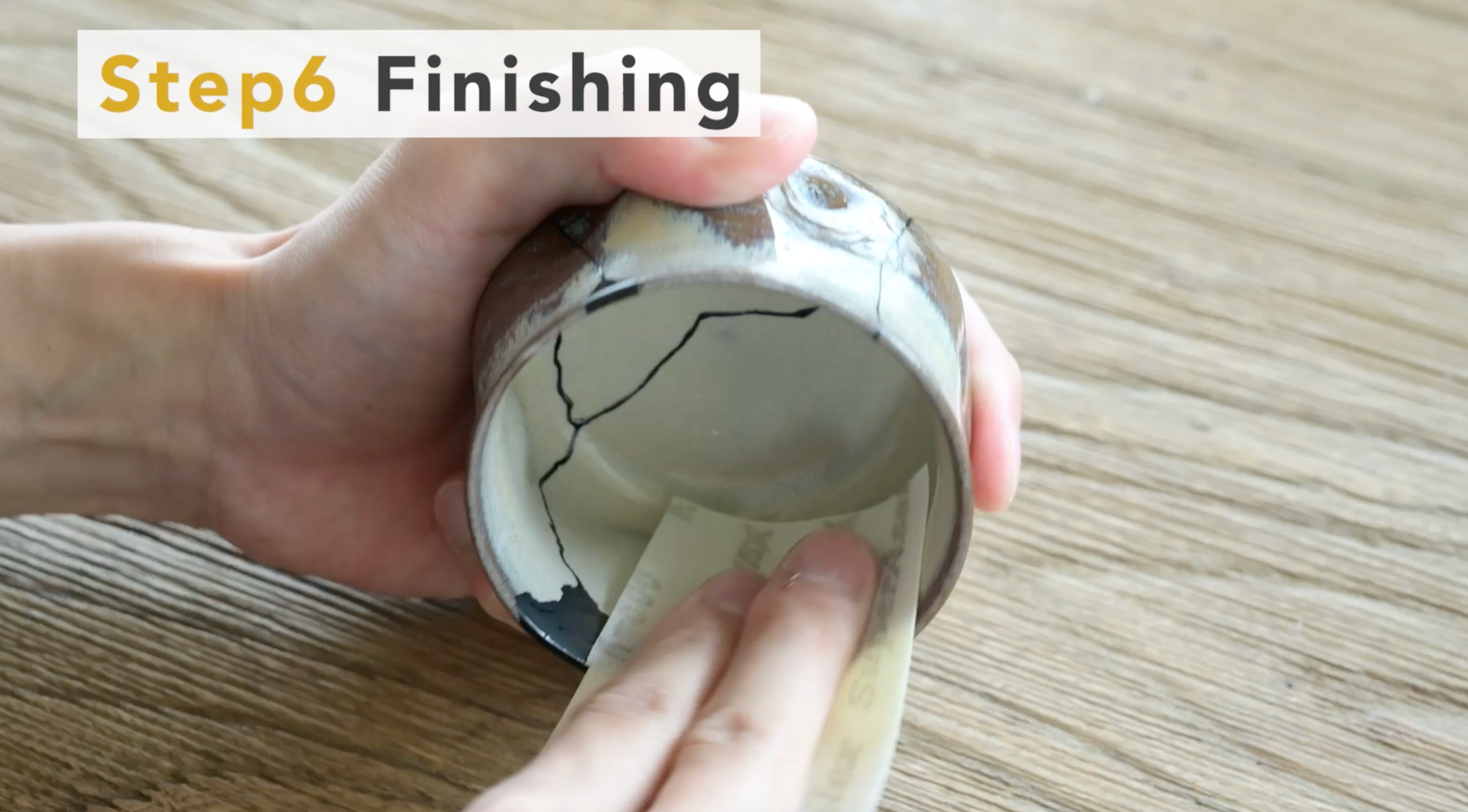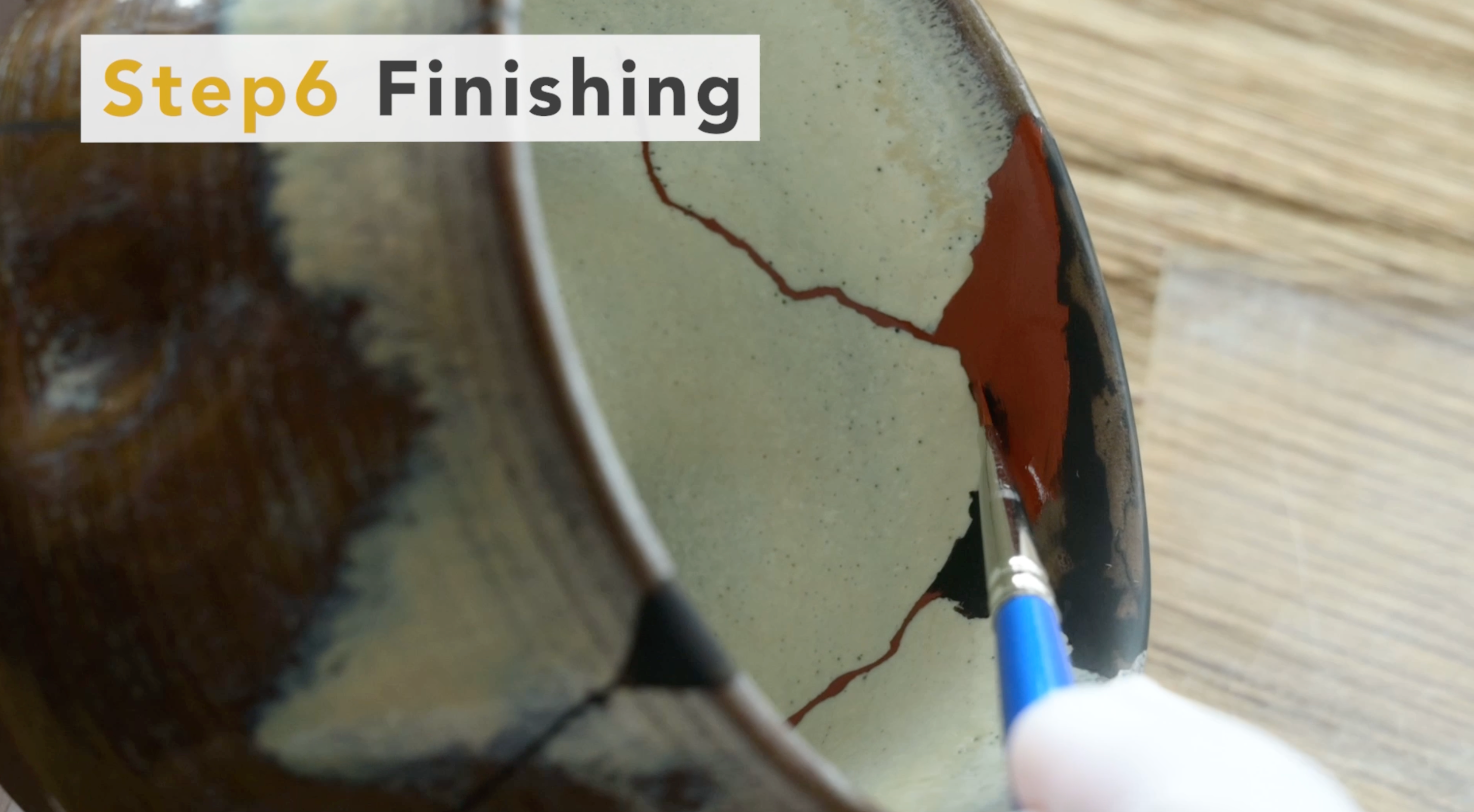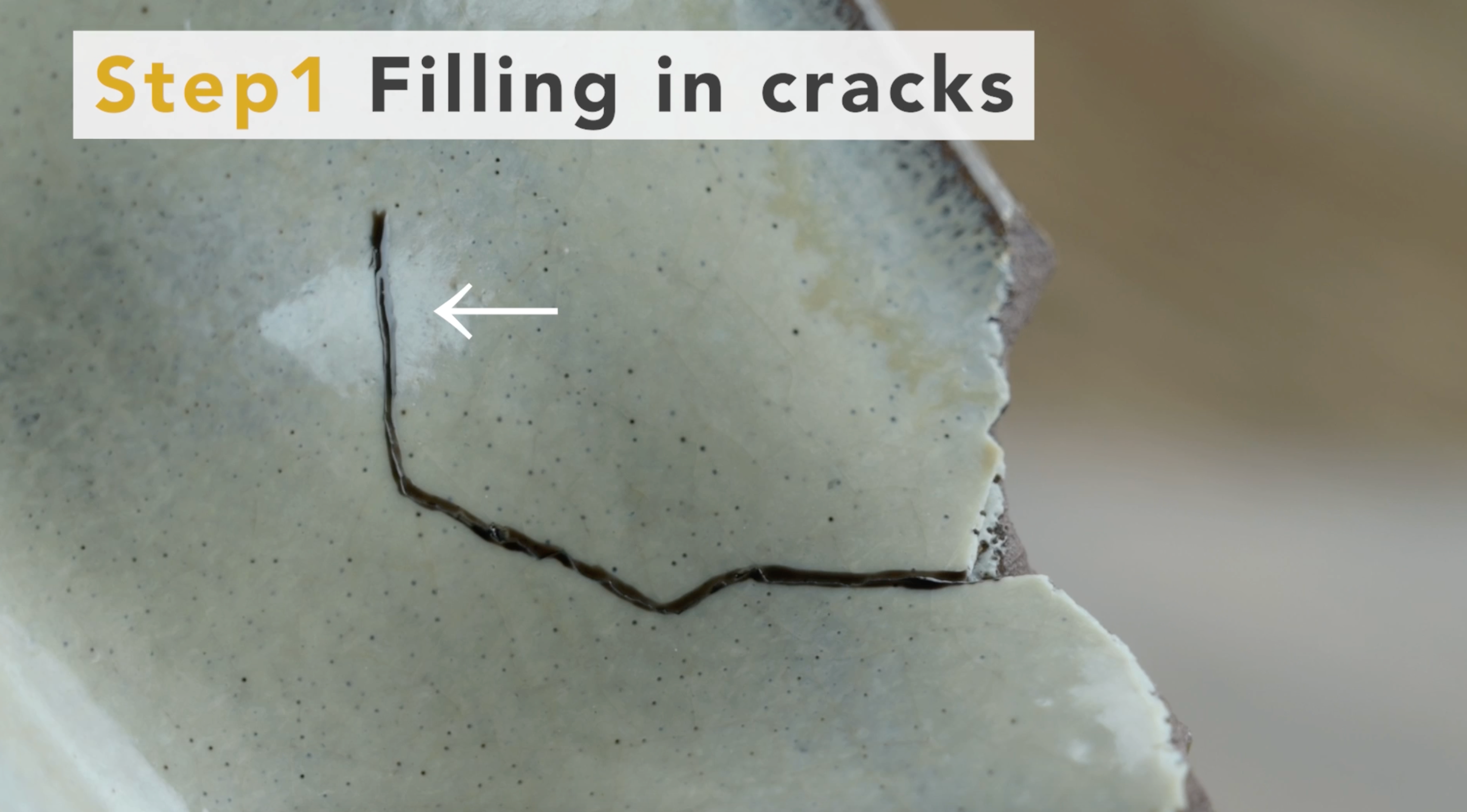 *For ceramics with thin glaze or those which urushi is likely to bleed through, use masking tape to protect the area around the joints in advance.