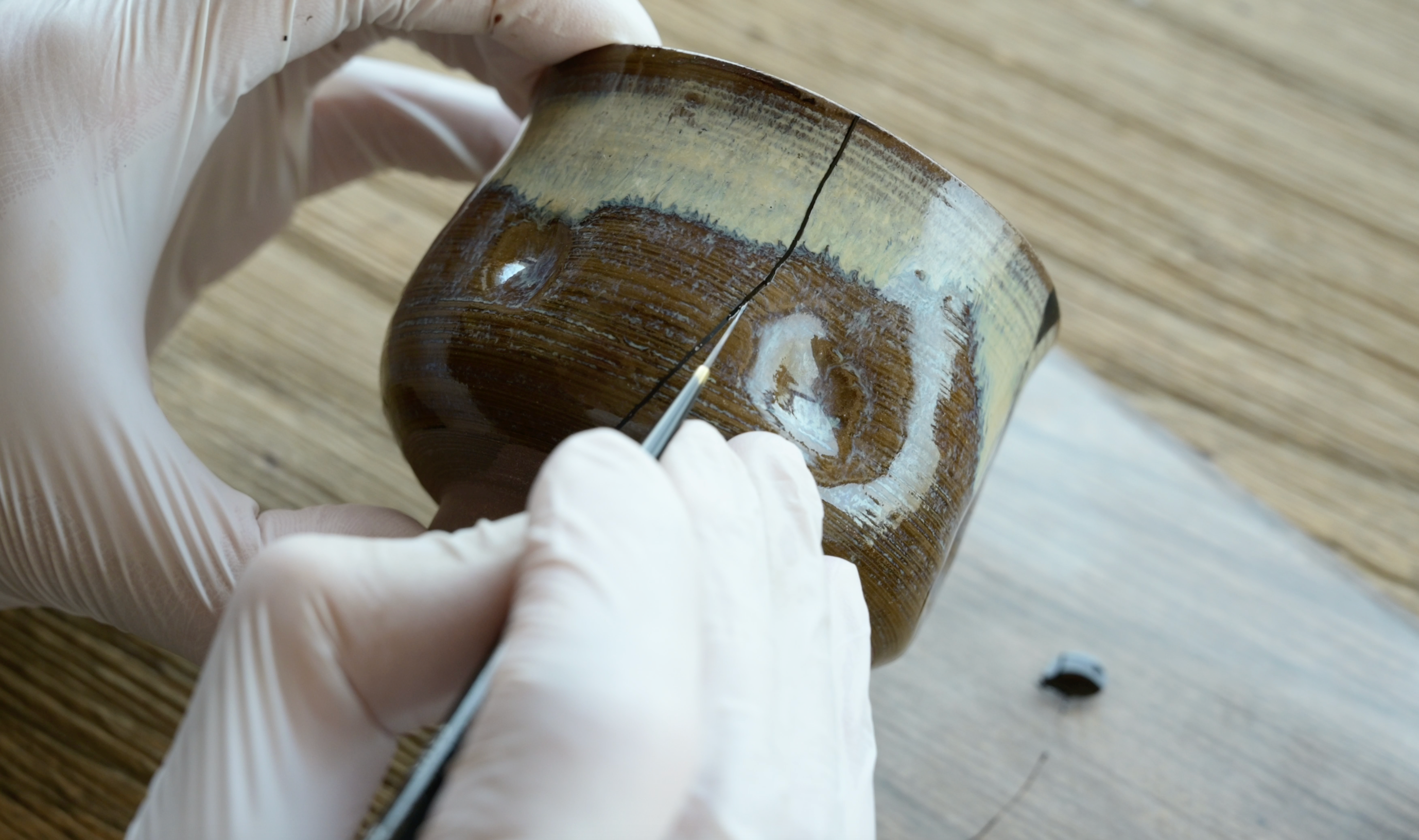 In the traditional method using urushi, the work is not completed in one day. This is because it takes several days for the urushi to harden. For example, a broken pottery can take up to a month to complete. The repair procedure is outlined below.